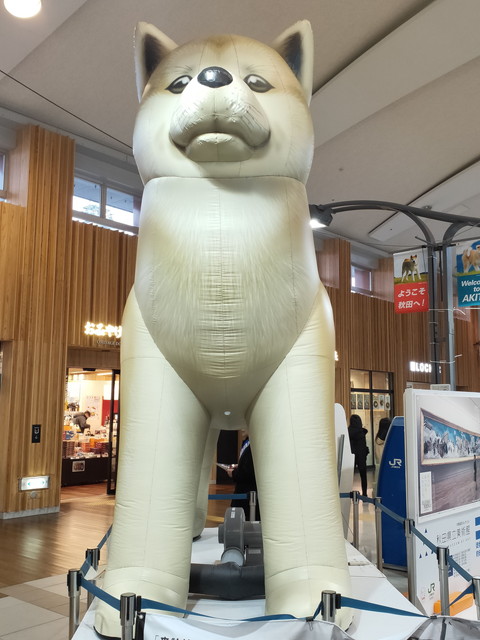秋田駅では秋田犬がお出迎え