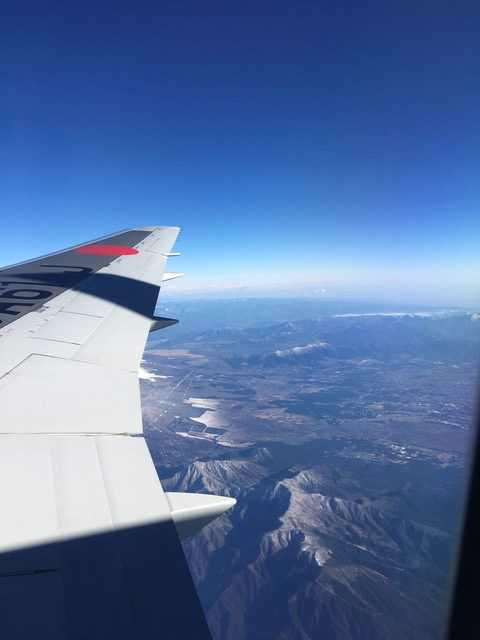 7時台の飛行機ではありますが、当然各地に行く飛行機の順番待ちで遅れが発生しています。離陸までに時間を要したので、到着は15分前後遅れか?乗り継ぐ人も多そうなので、少々焦りだす。