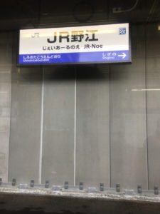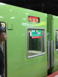 | 初日のセレモニーなど無視して乗るのが優先 | 車両は201系、普通に使う感覚で皆さん乗ってきます。実際は鉄度高め。 | 途中駅をいくつか撮影していきます。私鉄接続駅が多いのでJRを冠した駅があります。 |