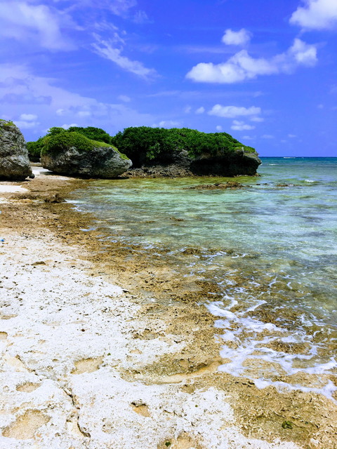 多良間島にはあまり砂浜がありません。凸凹としているのは溶岩で出来た島ということなのかな?歩く時はサンダル履きが必須ですね。