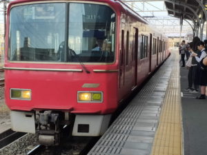| この日も7:06発の普通列車で。特急車両の間合い運用なので座席がゆったりしています。 | この次の8:02発快速特急に乗らなくても、この7:53発急行なら少し遅れて着くくらいなので乗ります。かなり空いてますからね。 |
