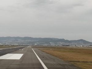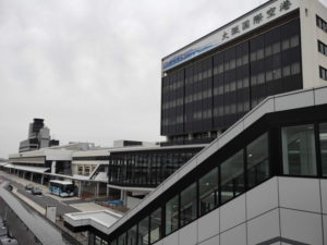 | 大阪モノレールで大阪空港まで向かいます。この日は万博記念公園で催し物があったらしく、臨時ダイヤになっていたので、結構空いていました。 | 大阪空港駅に到着。工事が終わってすっきりした感じがします。 |