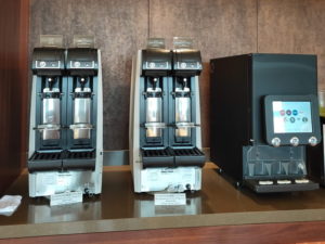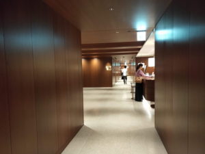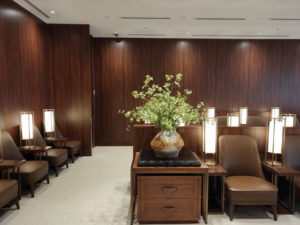 | 中は広々していて、福岡や那覇空港のラウンジの雰囲気に近いものを感じます。 | こういうところが日本的なのかな?と思います。ちょうど時間帯的にはピークすぎでした。 |