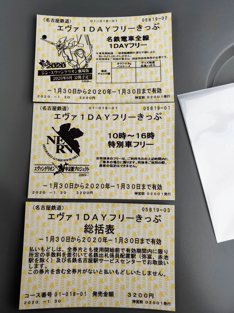 最初、「一日乗車券下さい」と言ったら、普通の一日乗車券を発行してくれました。でもグッズ引き換えには。エヴァンゲリオン一日乗車券の提示が必要と書いてあり、真っ青になって神宮前駅で事情を説明して、こちらのものに交換していただきました。