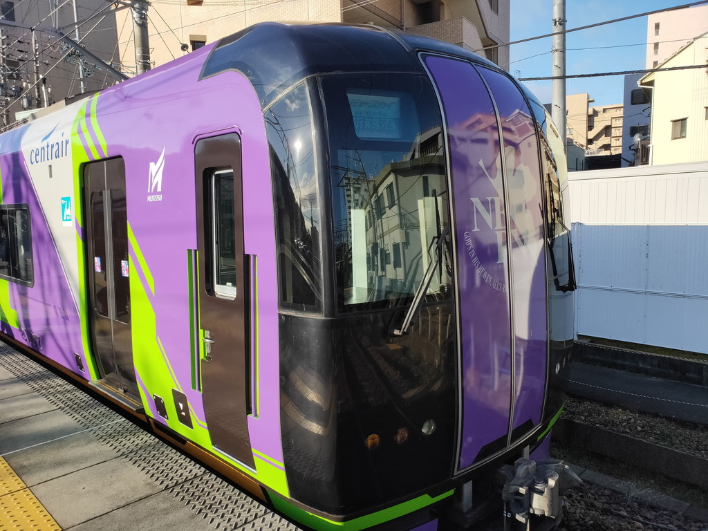 8両編成で来ましたが、この日は前4両が(名古屋・岐阜寄り)エヴァ車、後ろ4両(豊橋・中部国際空港寄り)は一般車の運用です。