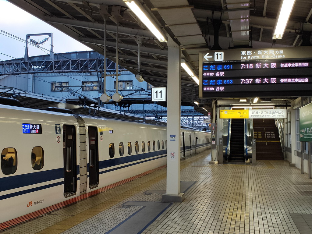 この列車は京都まで空いています。京都からは泊まった外国人が大量に乗り込んできますので、ここで乗り換えをします。8:47京都着