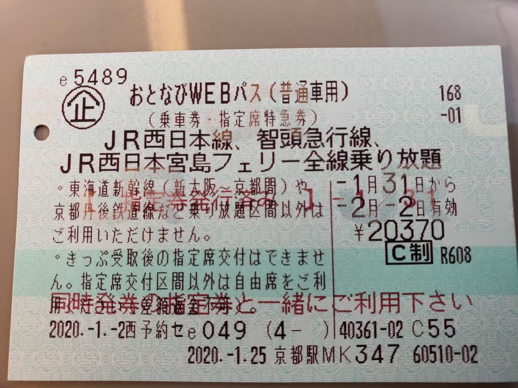 JR西日本が乗り放題になるので、出発地の名古屋から入口になる米原までは、前日買った回数券で2780円でした。