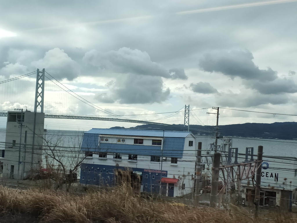 須磨を出ると明石海峡大橋が見られますが、建物が多いので、意外と写真を撮るタイミングがありません。