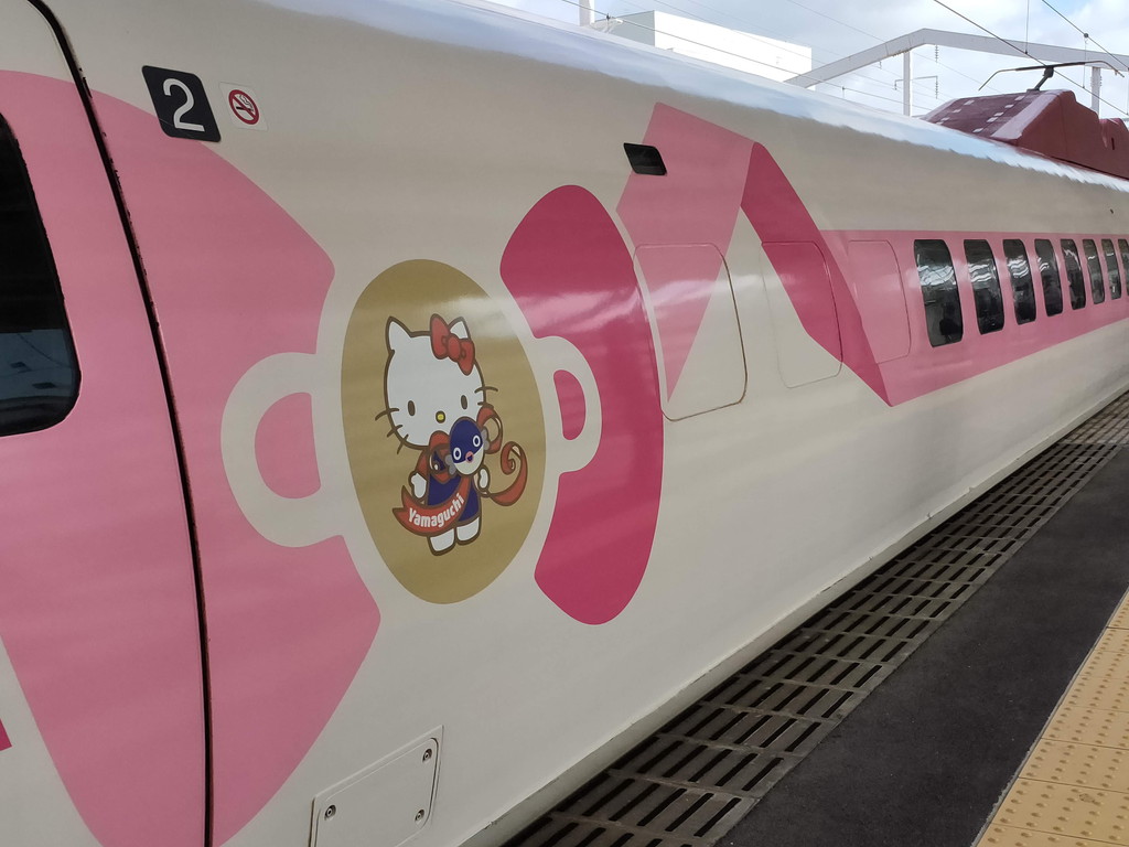 姫路からはキティ新幹線に乗ります。