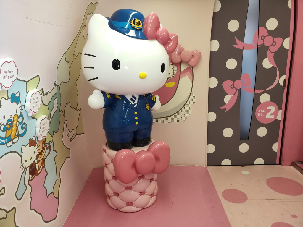 1号車はショッピングモール、2号車はキティで彩られた自由席。