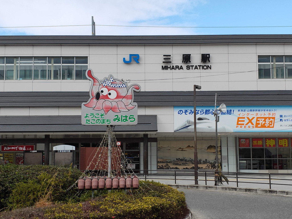 三原はタコが有名なので、食べられたらいいなーと駅を下りて、5分も歩けば四国や瀬戸内海への島々を結ぶ三原港へと歩いていきます。