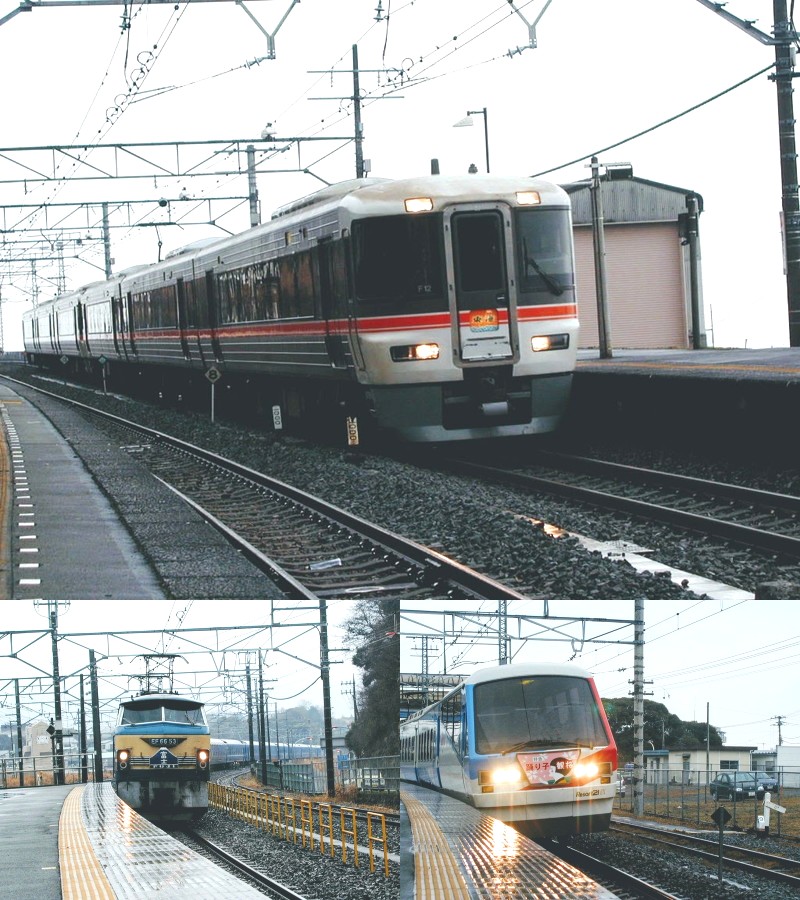 上が特急東海、左が寝台特急列車富士、右が東京からの臨時特急踊り子観桜号になります。