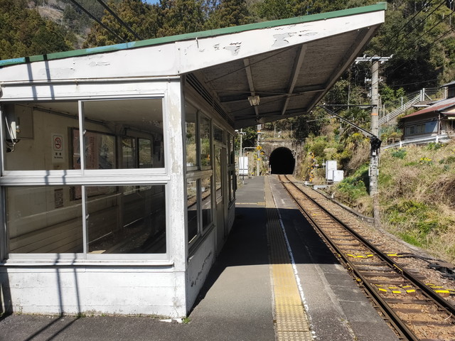 駅の先は次のトンネルが控えており、地形の厳しさを物語っています。
