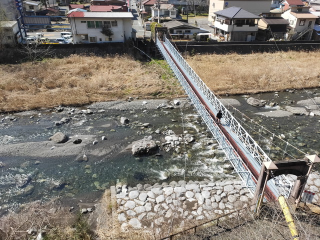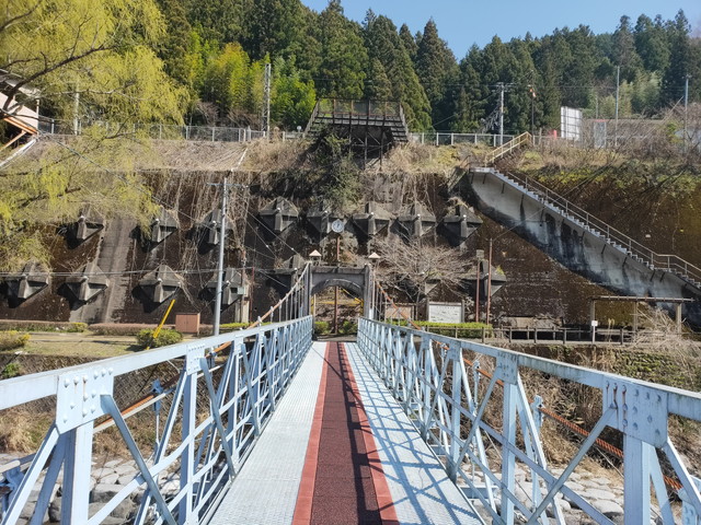 その存在を知らなかったので、塩の道国盗りのところに停めて佐久間側へ戻って吊り橋を歩いて渡っていきました。