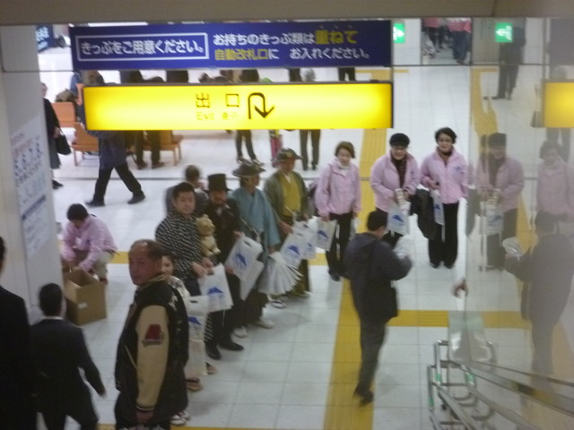 鹿児島中央駅も博多や新大阪への直通運転を祝うべく、式典はないものの、ボランティアの人たちがお祝いの品を配っていました。