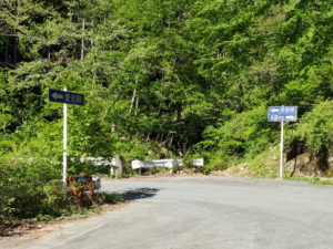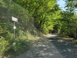 | こちらは伊砂トンネルの手前を左に曲がってすぐですが、分岐点の手前からこの看板が見えています。 |