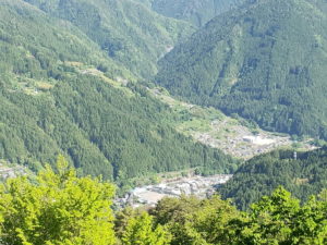 | 水窪駅が近づくと展望所があって市街地を俯瞰することが出来ます。この道を使っていけば50分くらいで大嵐と水窪を行き来出来ますが、おススメはしません。 | |