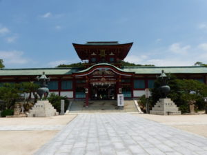 1時間近くかけて防府市内に向かい、防府天満宮、周防国分寺、毛利氏庭園を見ていきます。
