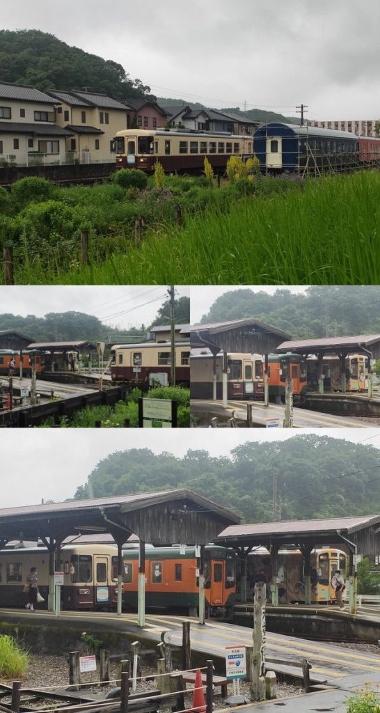 珍しい光景ですが、3つの列車が同時に並びました。