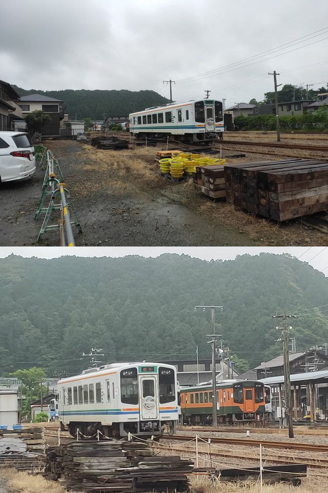 よくよく見ると線路わきにあるのは線路に敷く木とか石だったりしますね。