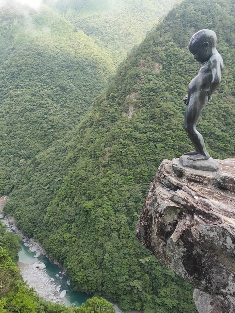 県道32号線の細い道をひたすら走っていくと突然現れるのがこの小便小僧の像です。わずかばかりの駐車スペースに停車して写真に収め U ターンして行きます。ちなみにこの像はガードレールの外に出ています。リアルにこんな真似など絶対出来ません(^^;;;