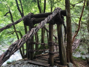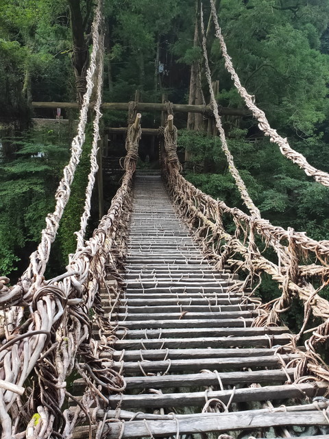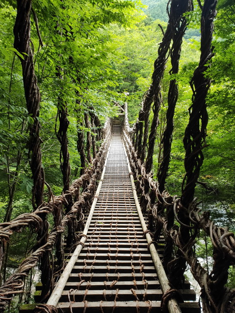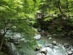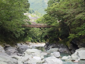 女橋を横に見ながら最後の男橋を渡ります。ここも川に降りることができますし、川の水はとても冷たく澄んでいました。かずら橋よりもグッと観光客も減り、3つを同時に楽しめるのでこちらに足を伸ばすのもおススメです。 |