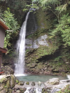 琵琶の滝を見て川岸に降りてみると結構橋が高いところにあるなというのが分かります。