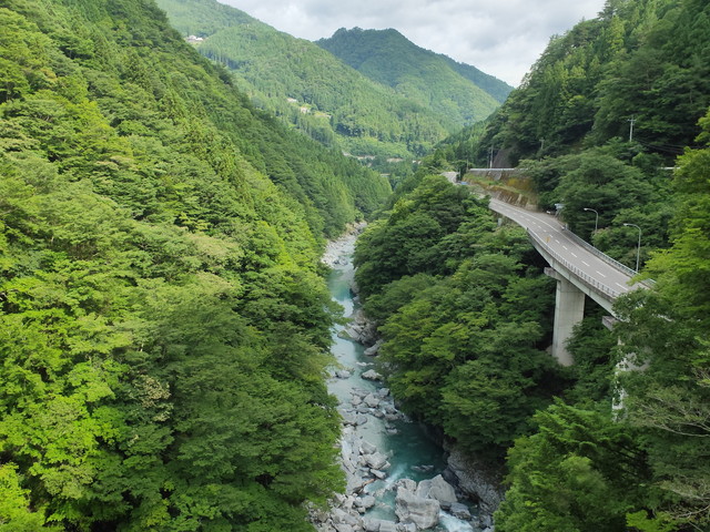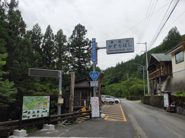 再び国道439号線を走って行くと奥二重かずら橋の駐車場が見えてきます。