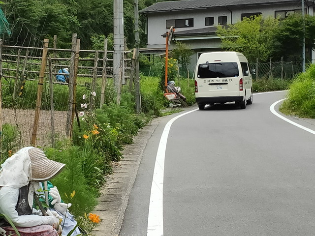 たまたま路線バスも通っていったのですが、まさかのワンボックスカー!確かにこの細い道ではマイクロバスですら通るのは厳しいでしょうね。