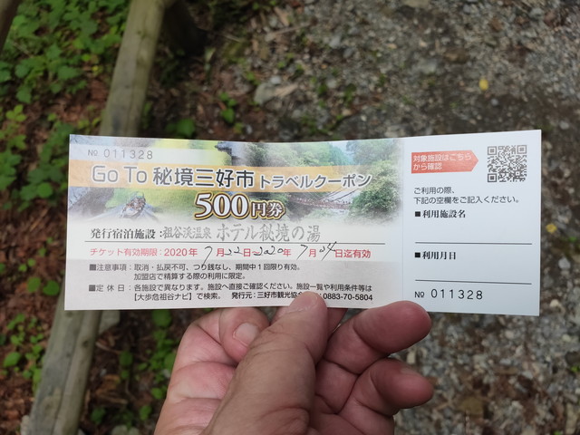 よく見ると昨日ホテルでもらった三好市で使える500円クーポン2枚が使えるみたいでしたがクレジットカード精算では駄目だということです。かずら橋など観光地でお土産に使ってねとお店の人に言われました。昨日のボケマートといいものいいが素直な人が多いなと思います。