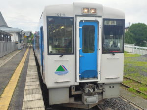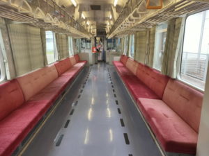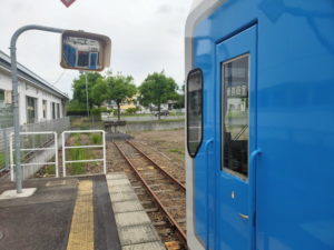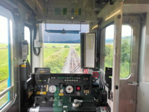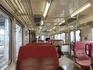 そのまま7分の待ち合わせで折り返し列車に乗車します。今度は高校生も少ないので、自由に動き回れる感じです。 |