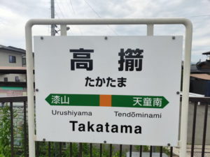 予定している左沢行きは1時間以上待ち時間があるので、時刻表を眺めながら奥羽本線で少し北上してみることにしました。14時52分発の新庄行きは701系の2両ワンマン列車で、高校生が多く乗っており、なんとか座るスペースを見つけました。南出羽、漆山、高擶の三つの駅が途中下車候補になりましたが、最初の二つの駅は意外に山形からの近郊住宅地という雰囲気になっており、高擶駅で降りることにしました。15時6分に到着です。 |