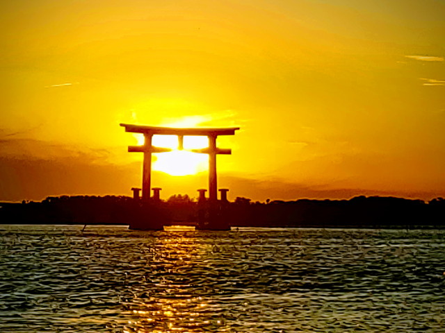浜松駅から3つ西に向かったところの弁天島駅そばの海岸(湖岸?)からこの景色を撮影しようと冬至の頃になると沢山人が集まってきます。