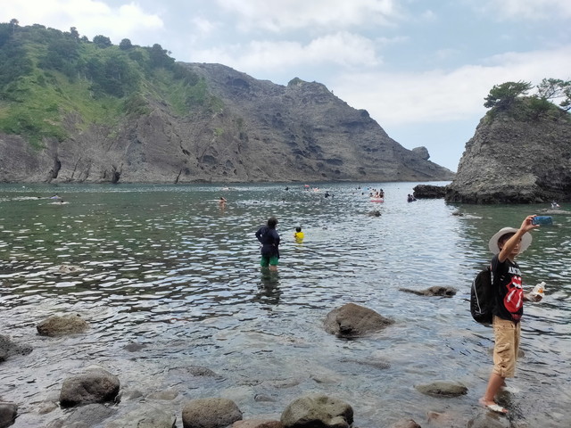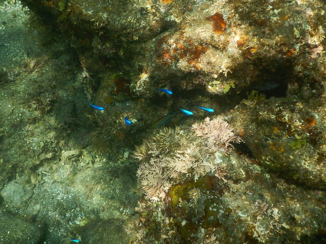 冷たい水が流れ込んでくると24℃くらいの感じですが、そうなると透明度も高くなります。とはいっても人が多すぎるせいもあるのか魚は少なめで、沖縄とかでシュノーケルしていたイメージには程遠かったです。