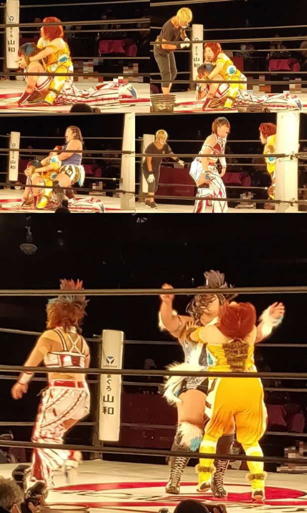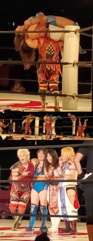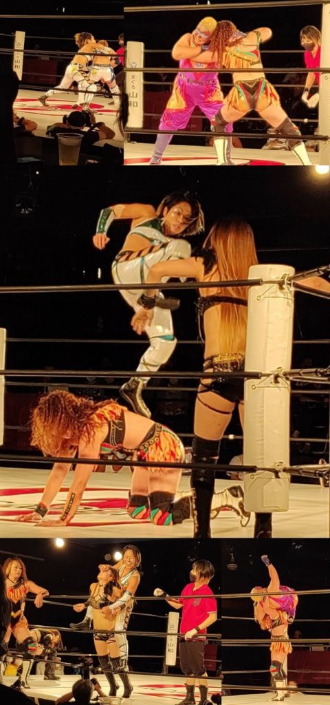 最後はセコンドを吹っ飛ばし、一瞬のスキをついて二人を同時に丸めこんでの大逆転勝利!思わず「うまい!」と心の中で叫び拍手喝采しました。