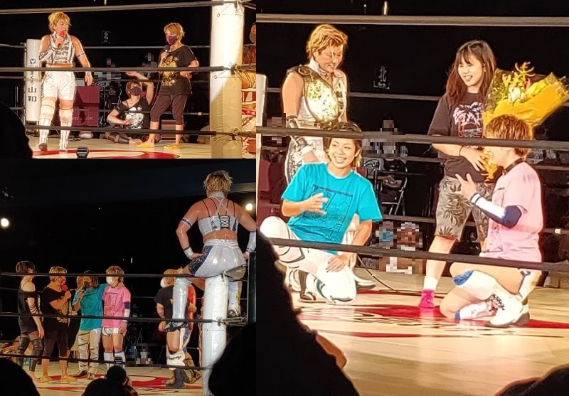 米山選手の動きからして、優宇選手に自分の力でピンフォールを取ってもらいたい的な考えがあるのか、それを感じての優宇選手の粘りもあったのですが、最後は関節技を決められ無念のギブアップでした。