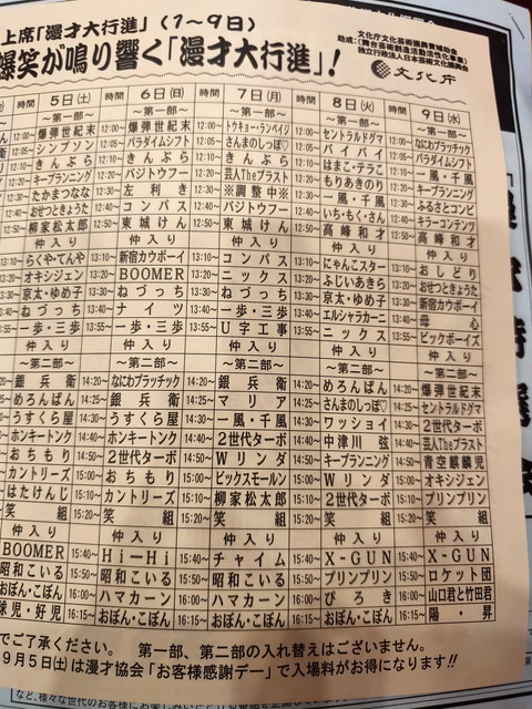 ナイツ人気は格段のようですから、事前に番組表をチェックして、ナイツ出演の際は開場前から並んでいく必要がありますね。
