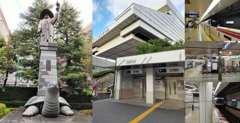 駅に向かう途中に見かけた像は徳川家康公で、何故か亀に乗っていました。