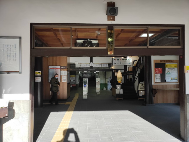 終点の奥多摩駅は山小屋を思わせるような立派な作りになっていて日原鍾乳洞などに向かうバスやタクシーが待ち構えていました。