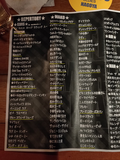 エルヴィスコーナーは1回目と3回目に行われ、2回目は通常の男性ボーカルとしての参加となります。