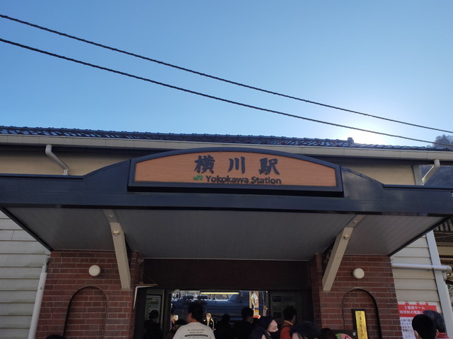 他の路線を青春18きっぷで回ってきたこともあって、始発駅の横川駅に着いたのは発車18分前の13時57分でした。すぐに横川駅の汽車の写真を撮って、すぐ横の所ではスタンプに長蛇の列が出来ていました。ここにある駅弁のおぎのやさんでは特製のコラボ駅弁の峠の釜飯との引き換えが行われていました 。
