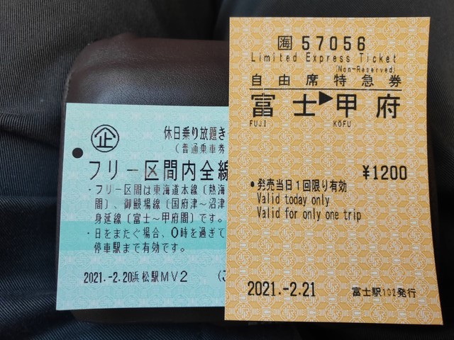 とはいえ静岡から乗ると1860円もかかるので、富士から甲府までの100 km 以内の日間で1200円払うように節約も心がけています。