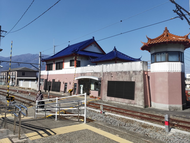 普通ならば甲府から普通列車に乗車するのですが、実は中央本線沿いに1 km ほど東へ歩くと身延線の金手駅がありますのでそこまでちょっと散歩がてら歩いてみました。途中に甲府城址を眺めたりしながら 細い道を歩くと片面ホームの駅が見えてきました。