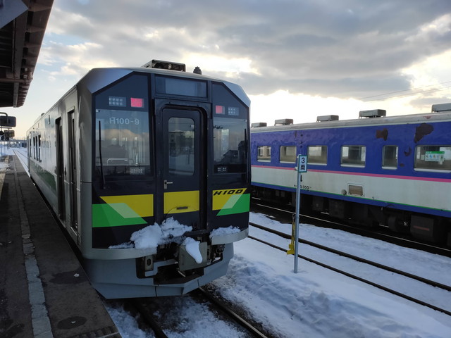 そんなローカル区間ではありますが、キハ40系という古いタイプのディーゼルカーがずっと走っていましたけど、 出力が弱いこともあって特に冬の降雪時に安定した運行に支障が出るとのことで、2020年春のダイヤ改正より新型のH100形車両に置き換えられました。