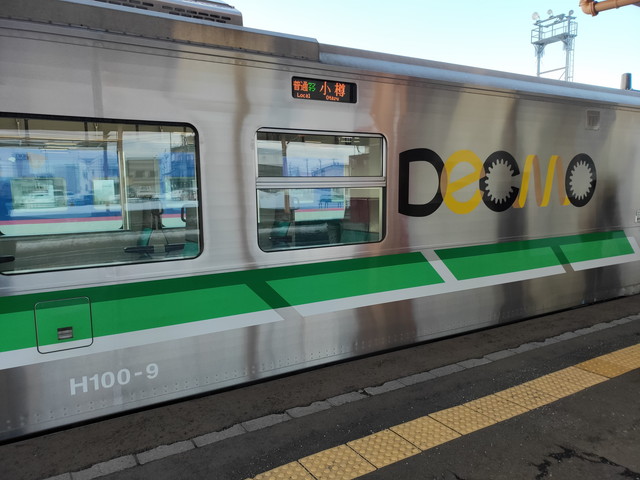 倶知安始発の H 100型一両に乗車して小樽へと向かいます。この列車の乗車率も2割くらいでした。余市からは多少の乗車があり、蘭島、塩谷と停車して小樽駅に20時44分に到着します。