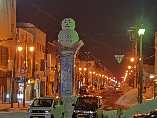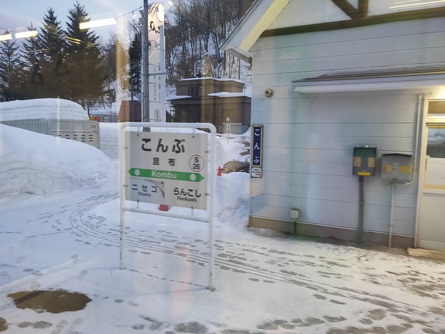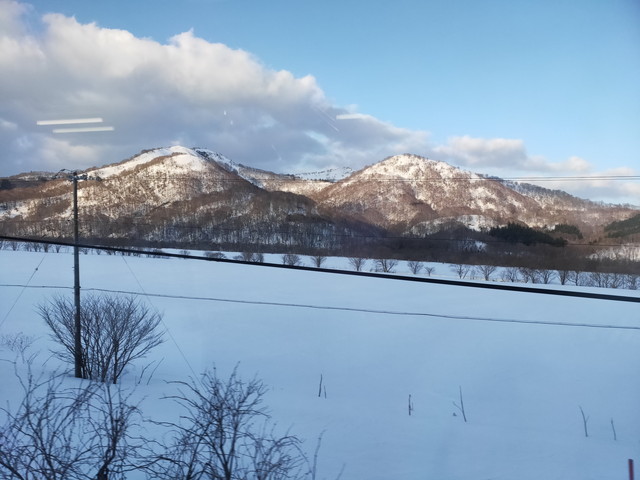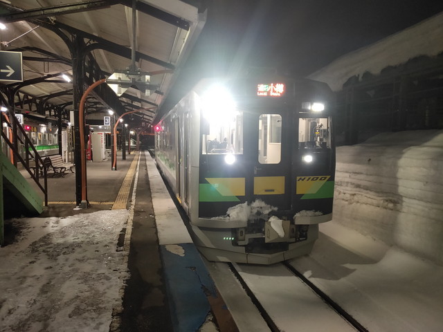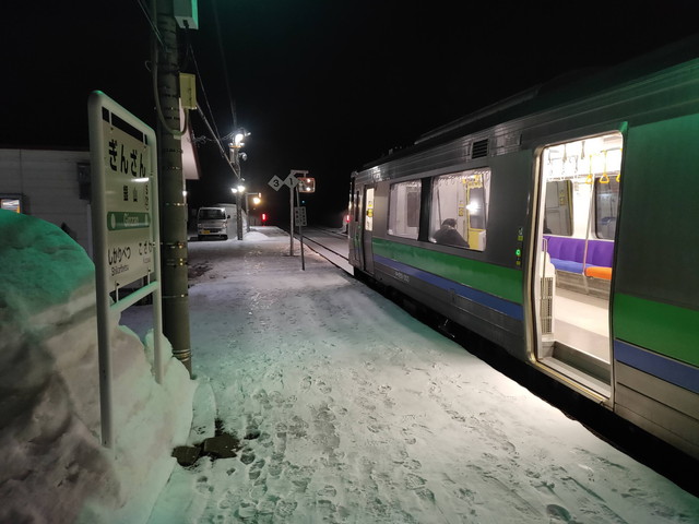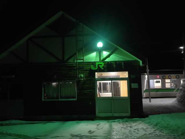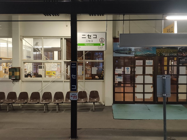 1時間ほど走ったニセコ辺りですっかり日が暮れてきて、山のスキー場のナイターの明かりが目立ってくるとニセコ駅に到着します。