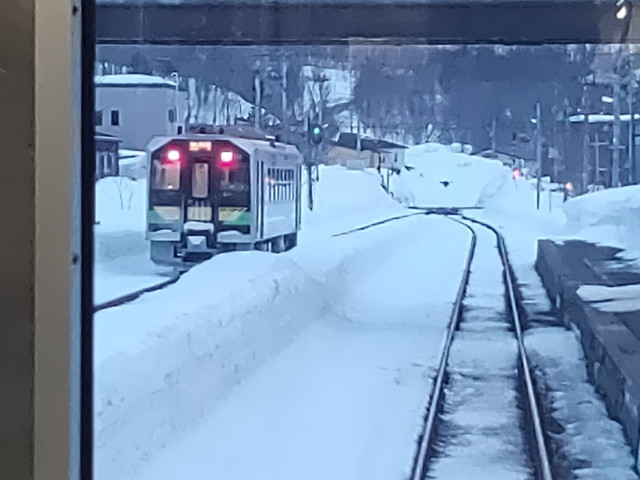 二駅走って倶知安に到着します。ここでは反対列車の行き違いなどで20分ほど停車をします。 反対列車もうこの駅で25分近く停車をしているので、おそらく運転手の休憩時間にあてているのではと思われます。