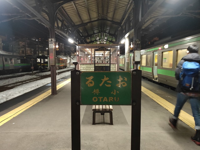 小樽からは20時55分発の普通列車江別行きに乗車します。