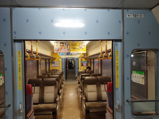 721系は快速エアポートなどに使われていた転換式クロスシートの車両ですので、ゆったり座れるもののすきま風が結構入ってきました。