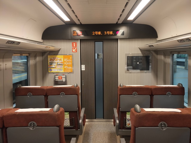 5両編成で自由席が4両あるので、問題なく窓側の座席を抑えることができました。